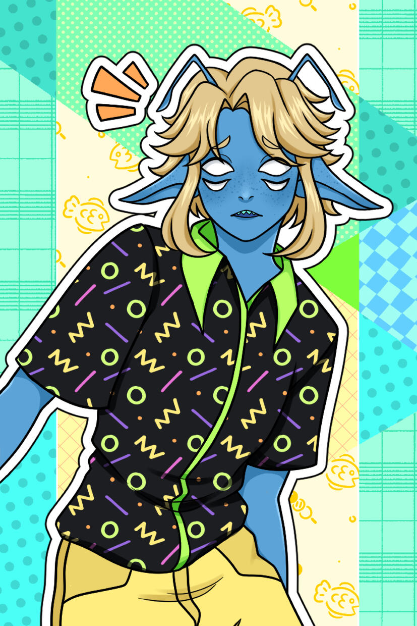 An icon/headshot on my silly, simplified style!Includes an icon/headshot in flat colors, with simple background (pattern, gradient or solid color) at your choice.This YCH is made in 6x6cm, 300dpi canvas, it's meant to be used as profile picture or non profitable, personal use goods such as stickers and buttonsPrice: 15 USD+5USD for complex designs/extra details